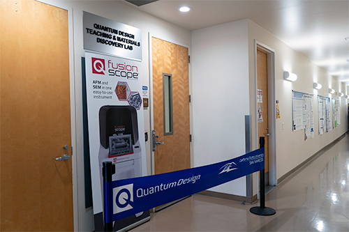 uantum Design was excited to join with CSU San Marcos and co-sponsor Lake Shore Cryotronics to celebrate the grand opening of the Teaching and Materials Discovery Lab. The ribbon cutting ceremony was preceded by symposium presentations on the importance of teaching physics to undergraduate students using modern, research-grade instruments, and followed by an instrument demonstration by Lake Shore. There were more than 70 attendees at the event, including staff and students from CSU San Marcos, alumni of the Physics Department program, Quantum Design employees, and various other supporters of the Education Initiative.